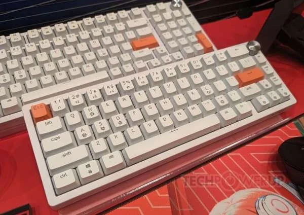 XPG также оставила немного места на стенде для своей новой линейки игровых клавиатур Sorcerer — стандартная модель представляет собой «полноразмерную» плату с форм-фактором 96 %, доступную в черном или белом цвете. Простая эстетика Sorcerer может быть нарушена несколькими (тремя) дополнительными клавишами с акцентом XPG. Серебристый диск управления, похоже, является стандартным креплением. Конструкция с прокладкой и тройным пенополиуретановым слоем обеспечивает изысканный и приятный набор текста. XPG оснастила Sorcerer специальными переключателями Red и системой RGB-подсветки на каждую клавишу (управляется и настраивается с помощью программного обеспечения XPG Prime).