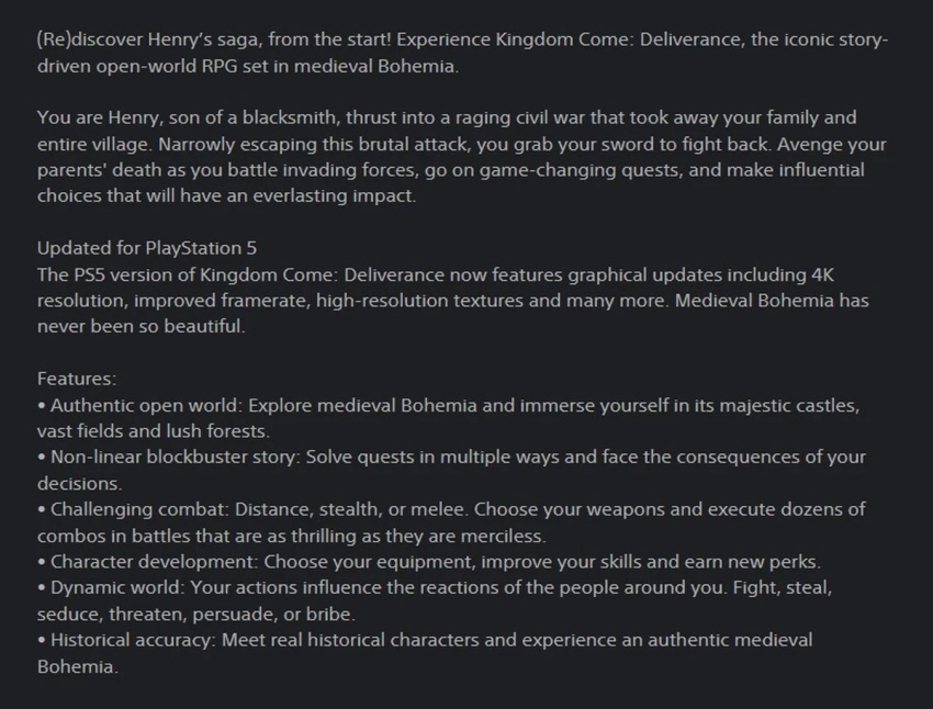 Главная » Статьи » Упоминание Kingdom Come: Deliverance для PS5 обнаружили в PS Store