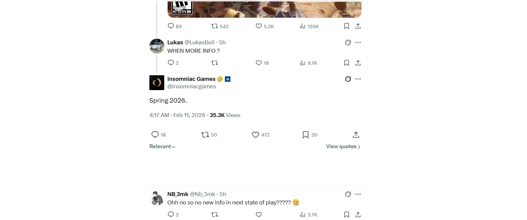 Напомним, что геймплейный трейлер Marvelʼs Wolverine показали на SoP в сентябре 2025 года. Новое шоу State of Play пройдёт в ночь на 13 февраля в 01:00 МСК.