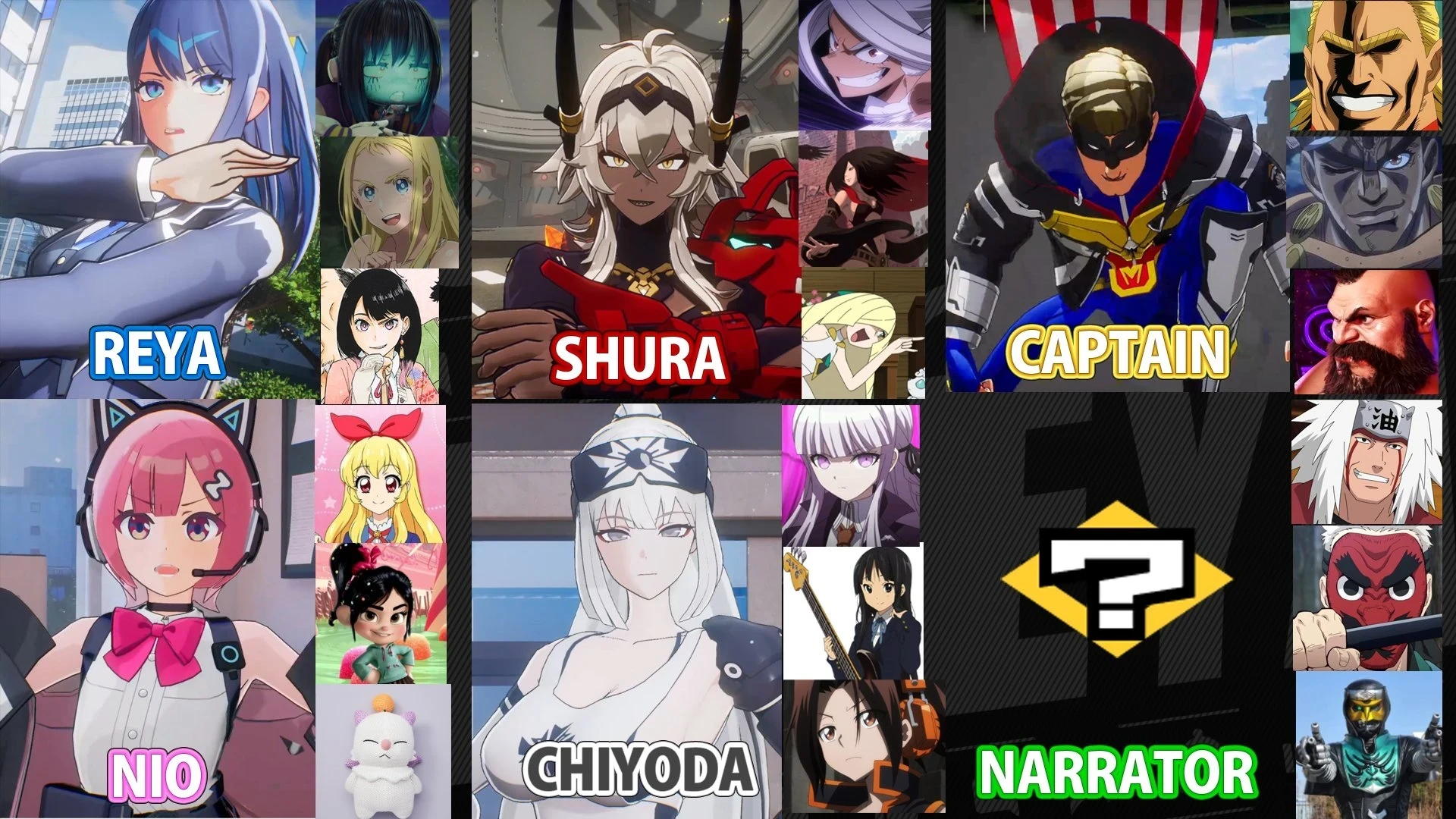 Ниже представлены герои экшена и персонажи, которым их японские актёры озвучки подарили голоса.