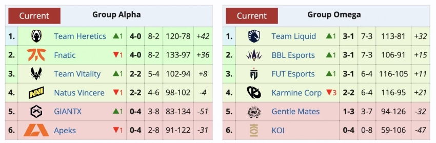 Liquid занимает первую строчку в своей группе. Ей предстоит сразиться с Karmine Corp, которая находится на четвертом месте. Fnatic же должна встретится в матче за первое место с Team Heretics. Оба матча пройдут 25 апреля, затем станет понятно, с какой стадии коллективы начнут плей-офф.